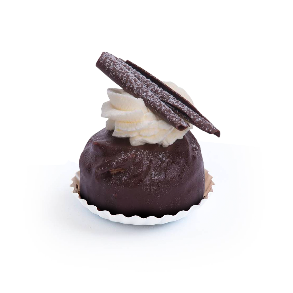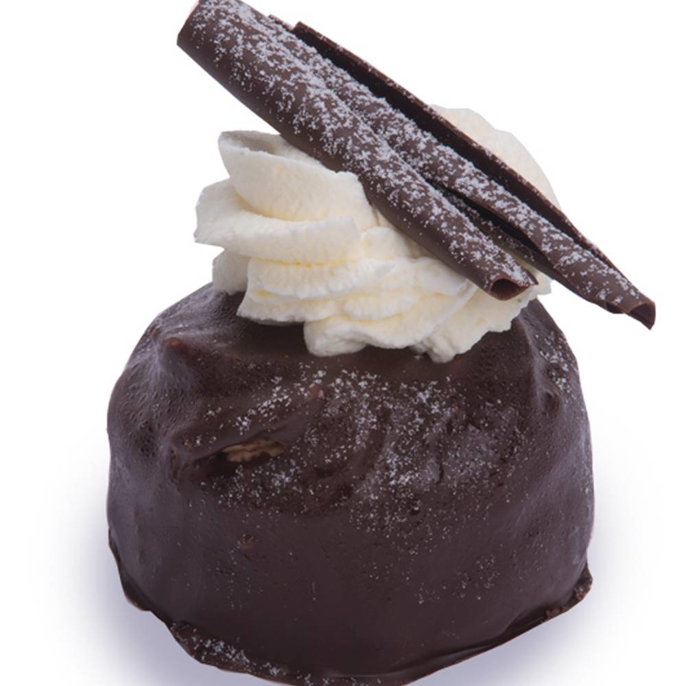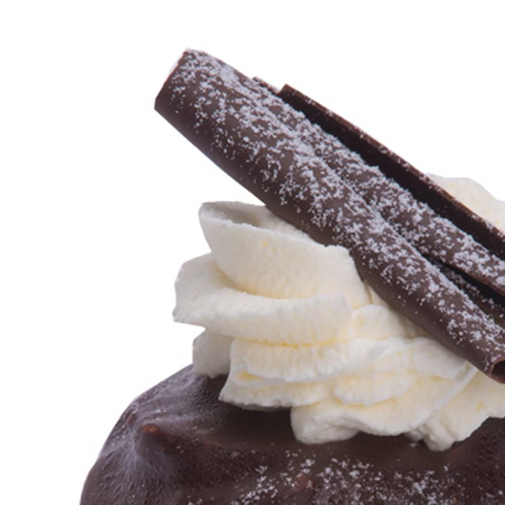 Chocolade, chocolade en nog eens chocolade. Een gebakje van chocoladecake, gevuld en afgewerkt met een smeuïge chocolade-fudge. En dan natuurlijk on top, niet te missen, chocoladekrullen! Een hemelse traktatie voor iedere vrouw en/of chocoladeliefhebber.